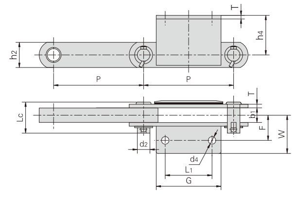 P250F61,帶附板輸送鏈,工程鏈條廠家,鏈條規格參數