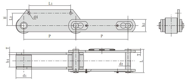 P500F5,帶附板輸送鏈,工程鏈條,鏈條規格參數