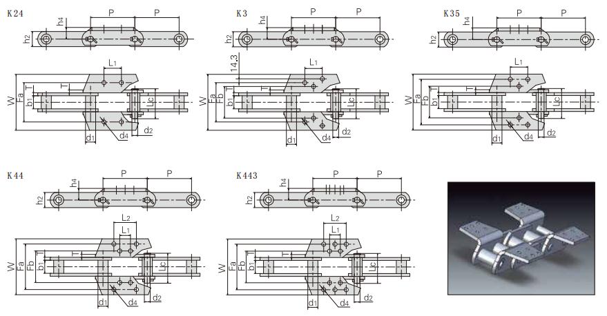 | 鏈號 | 附件類型 | 附板尺寸 | 每件重量 | ||||||||