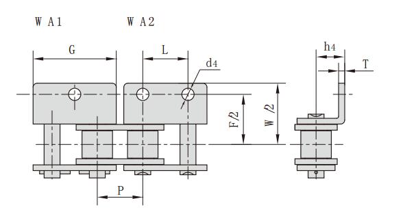 12AWA2.04_短節距12A單側雙孔帶彎板附件輸送鏈