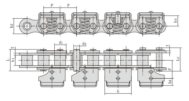 夾薄膜鏈條,夾膜鏈規(guī)格型號具體參數(shù)如下: