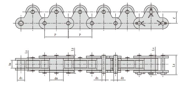 C2050-1LTRF3_帶頂滾輪雙節距輸送鏈