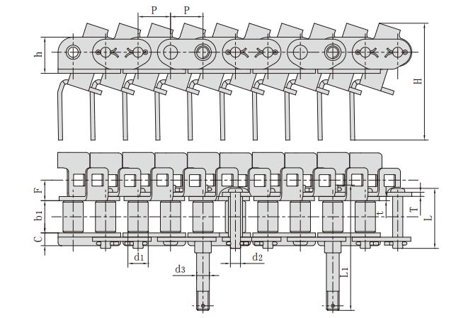 雙節(jié)距帶特殊附件輸送鏈