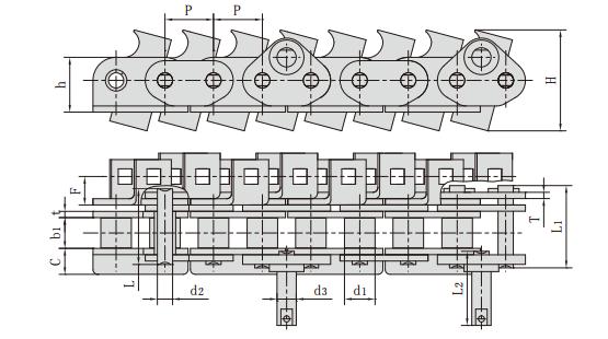 雙節(jié)距帶特殊附件輸送鏈